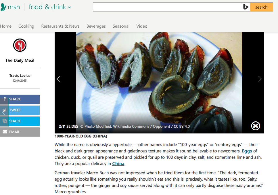 Januar 2016: Tausend Jahre alte Eier auf msn.com