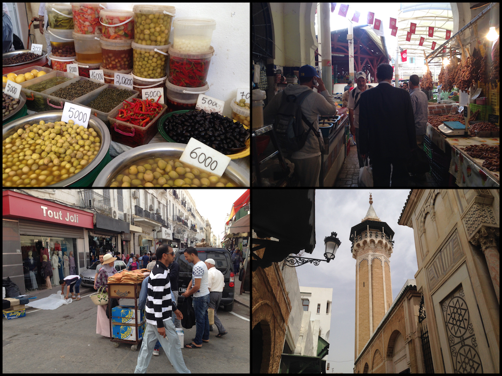 Und gerade das ist auch das Tolle an Tunesien: Dass man auch heute, trotz der kreativen Umwälzungen, noch überall die echt tunesischen Dinge findet. Hierfür muss man im Grunde nur zum Marché Central in Tunis gehen. Zwischen Fisch, Käse, Nudeln, Oliven, Datteln, Harissa, Obst und Gemüse fühlt man sich hier wie vor vielen Jahrzehnten. Dort, wie überall sonst, wird man freundlich empfangen von den Tunesiern, die mir alles in allem ein sehr lebensfrohes Volk zu sein scheinen. Mein interessierter Blick auf einen mit Leckereien gefüllten Teller bei einem Imbiss etwa führt dazu, dass der Besitzer des Tellers mich direkt dazu einlädt, das Essen mit ihm zu teilen.
